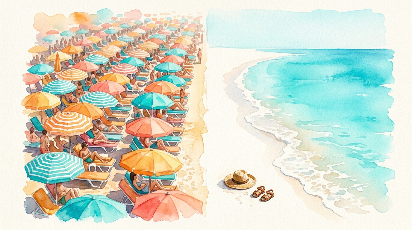 Gleichzeitig zeigt die Studie von Beach.com, dass 74 % der Reisenden Strände wollen, die mehr bieten als Sand und Wasser – etwas, das begeistert oder überrascht. Das Problem: Die Reiseziele, die genau das liefern, sind selten die, die Reisebüros am lautesten bewerben. Denn dort sind die Provisionen für Resorts, die du ohnehin schon kennst, deutlich höher.